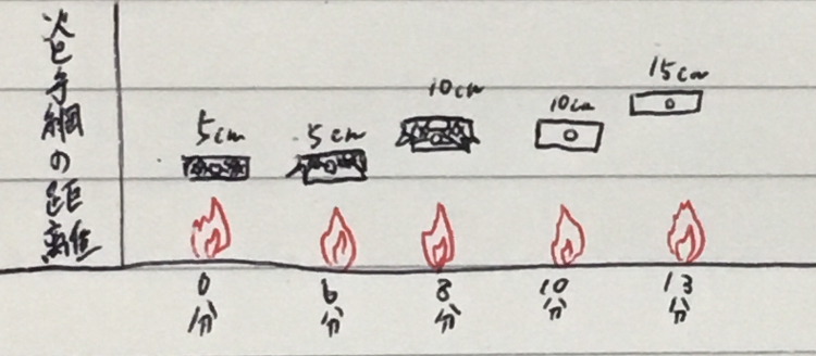 火と手網の距離を離すタイミングも早めにしたが、